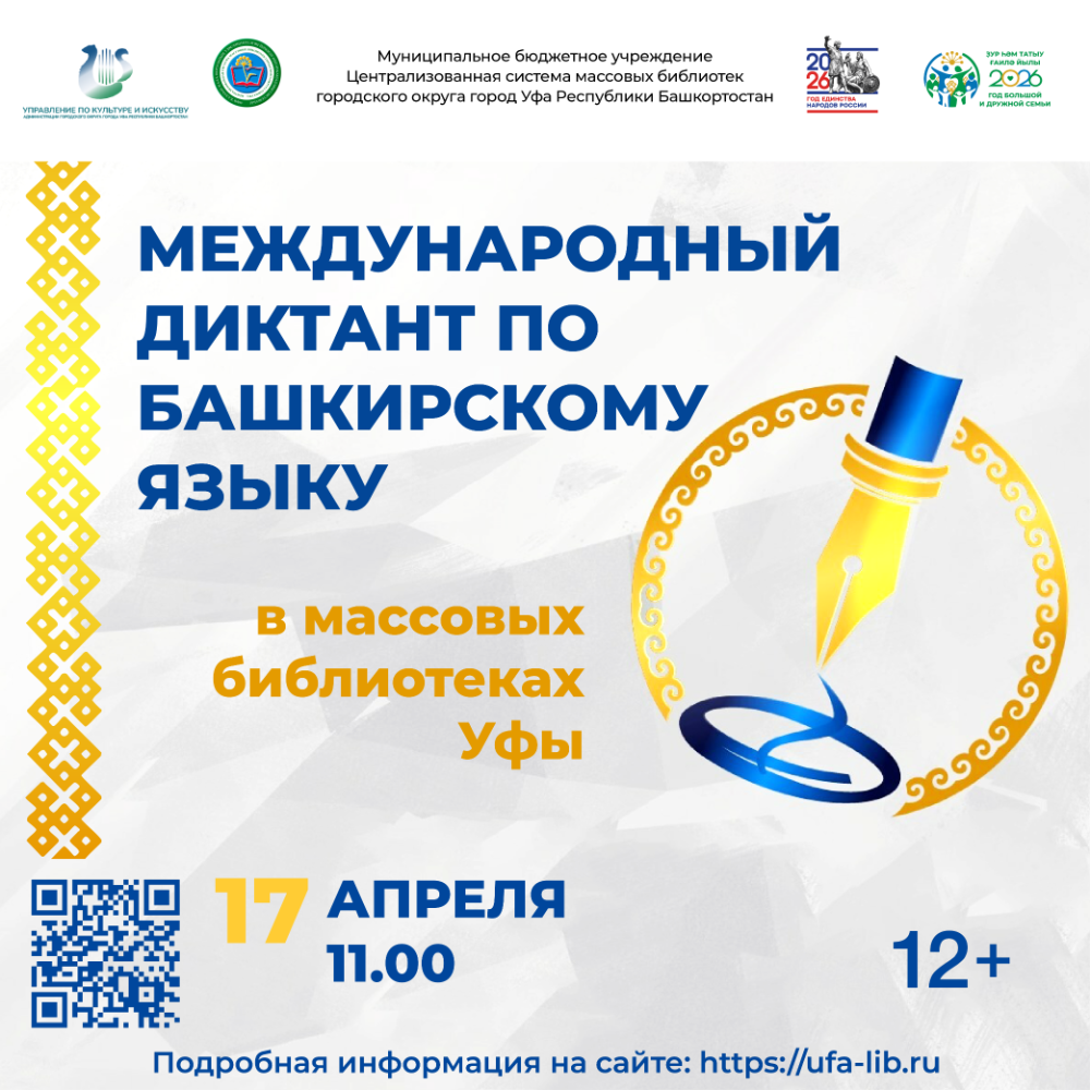 17 апреля 2026 года состоится образовательная акция «Международный диктант по башкирскому языку - 2026». Диктант пройдет в онлайн и офлайн форматах.